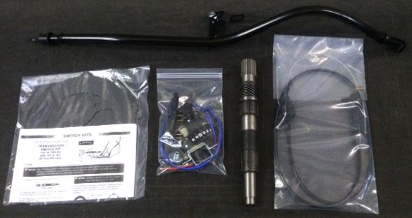 TRANSMISSION SWITCH KIT (4x4) ALLOWS YOU TO SWAP A GM 350 TRANSMISSION to a GM 700-R4 TRANSMISSION with 203 or 205 Transfer Case. Kit Contains: Dipstick & Tube, Shaft, Detent Cable, Lock-up Solenoid, Brake Switch, Pressure Switch, Vacuum Switch, Misc. Hardware and Gaskets.