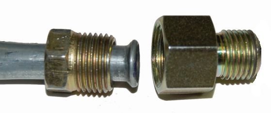 COOLER LINE "REPAIR" FITTING GM 4L60E & 4L80E(Front) Thread Size 1/4 -18 npsm (male) to 5/8 -18 UNF (female) Threaded for 3/8" Brake Line