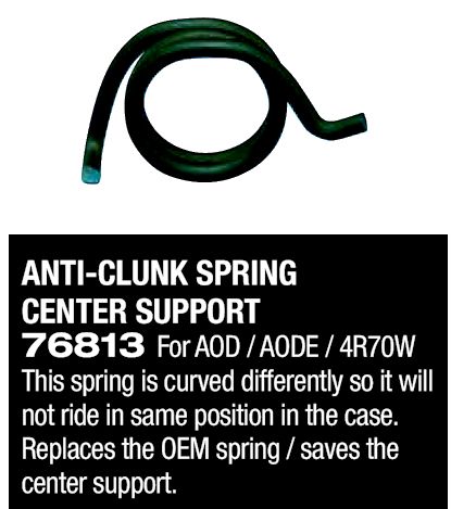 ANTI-CLUNK SPRING CENTER SUPPORT, AOD, AODE & 4R70W This spring is curved differently so it will not ride in same position in the case. Replaces the OEM spring / saves the center support.