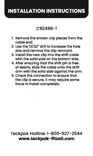 SHIFT CABLE REPAIR CLIP Fits Most ('05-'15) CHRYSLER, DODGE & JEEP with 41TE or 62TE Transmission.