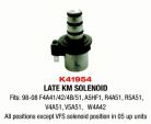 KM (OE) SOLENOID, 46313-39051 Fits: (98-08) F4A41, F4A42, F4A4B, F4A51, A5HF1, R4A51, R5A51, V4A51, V5A51 & W4A42 All positions except VFS solenoid position in '05-up transmissions. OE# 46313-39051