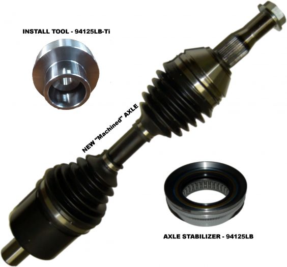 COMPLETE INSTALL KIT - INCLUDES 94125LB-Ti FITS: CADILLAC 4T80E - DRIVERS SIDE ONLY THIS BEARING & SEAL COMBO ADDS SUPPORT & ELIMINATES AXLE SEAL LEAKAGE. INSTALL TOOL IS A MUST FOR DIY'ers... It insures the correct alignment of the stabilizer to the axle. Simply install the Seal/Bearing combo into the transmission with the Install Tool and install the new axle. This kit includes: 1- New Axle (already machined), 1- 94125LB Axle Stabilizer (Bearing seal combo), 1- 94125LB-TI (Install Tool) and 1- extra seal NO MACHINING IS REQUIRED WITH THIS KIT. REPLACEMENT SEAL: 330749