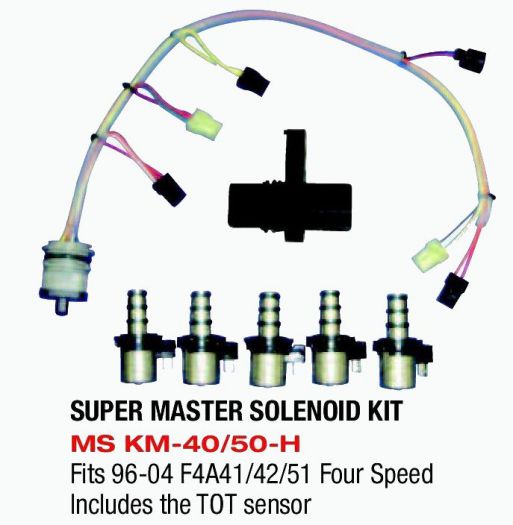 SUPER SOLENOID KIT Fits: ('96-'04) F4A41, F4A42 & F4A51 Four Speed Transmissions Includes Harness & TOT Sensor