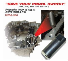 "PRNDL" SWITCH REMOVAL TOOL Easily removes the "Nail Head" pin without damaging the PRNDL switch. GM 4T65E, 6T40E, 6T70E, 6F50E, 6F70E