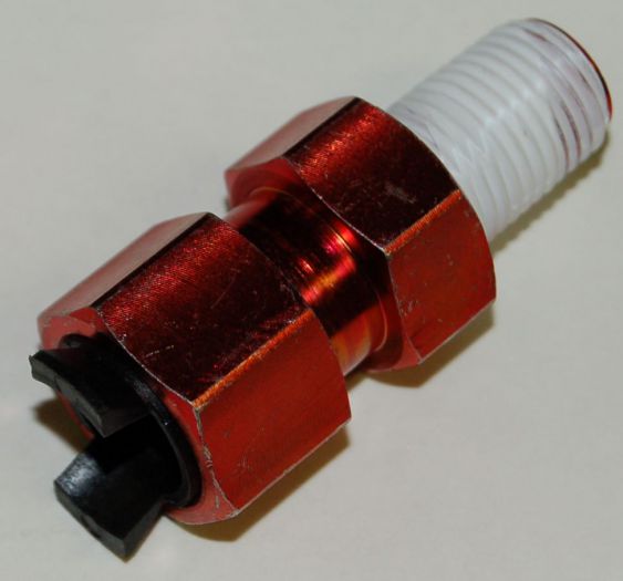 This special "Case Saver" fitting has longer threads that are slightly tapered so that they will tighten securely into transmission cases that may be worn or damaged. The T86996BR also has two O-rings inside for a better seal and a groove on the outside of the fitting that allows a special retaining clip to be used to hold both the line and fitting together. Thread Size 1/4 -18 NPT (male) to 3/8" Tube - Quick Connect (female)